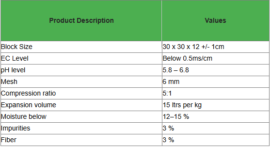 • These coco peats are washed, dried and compressed into 5 kg blocks.Washing controls the electrical conductivity of the block which is important for root and plant growth.